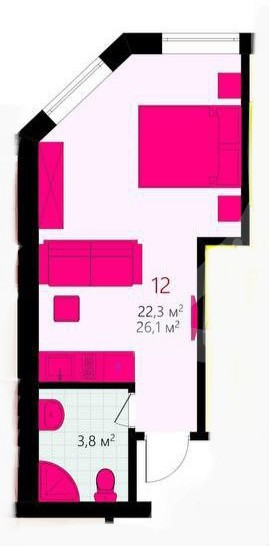 Общая площадь 26.1 м2
