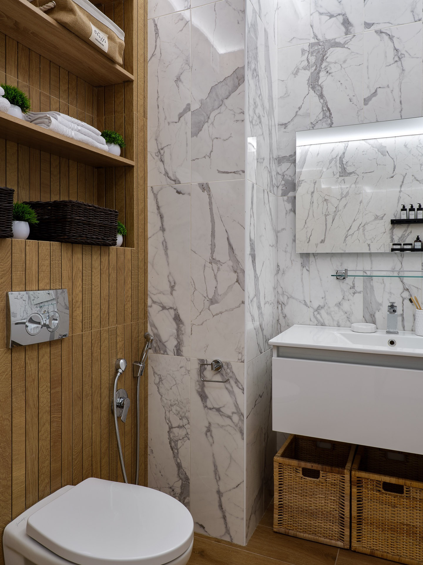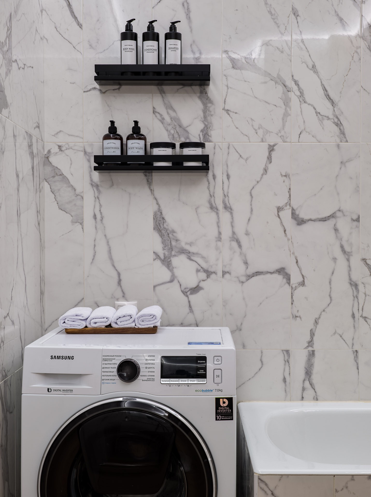 Функциональная удобная планировка: кухня-гостиная 16 м2 и спальня 5м2, большая ванная комната, гардеробная и лоджия. Бытовая техника: плита и посудомоечная машина марки Bosch, встраиваемая микроволновая печь Weissgauf, телевизор Samsung с диагональю 55 дюймов и стиральная машина Samsung с функцией добавление вещей во время стирки, встраиваемый холодильник Samsung  с функцией no frost, кондиционер, испанская керамическая плитка в ванной porcelanosa, белый керамогранит kerama marazzi.