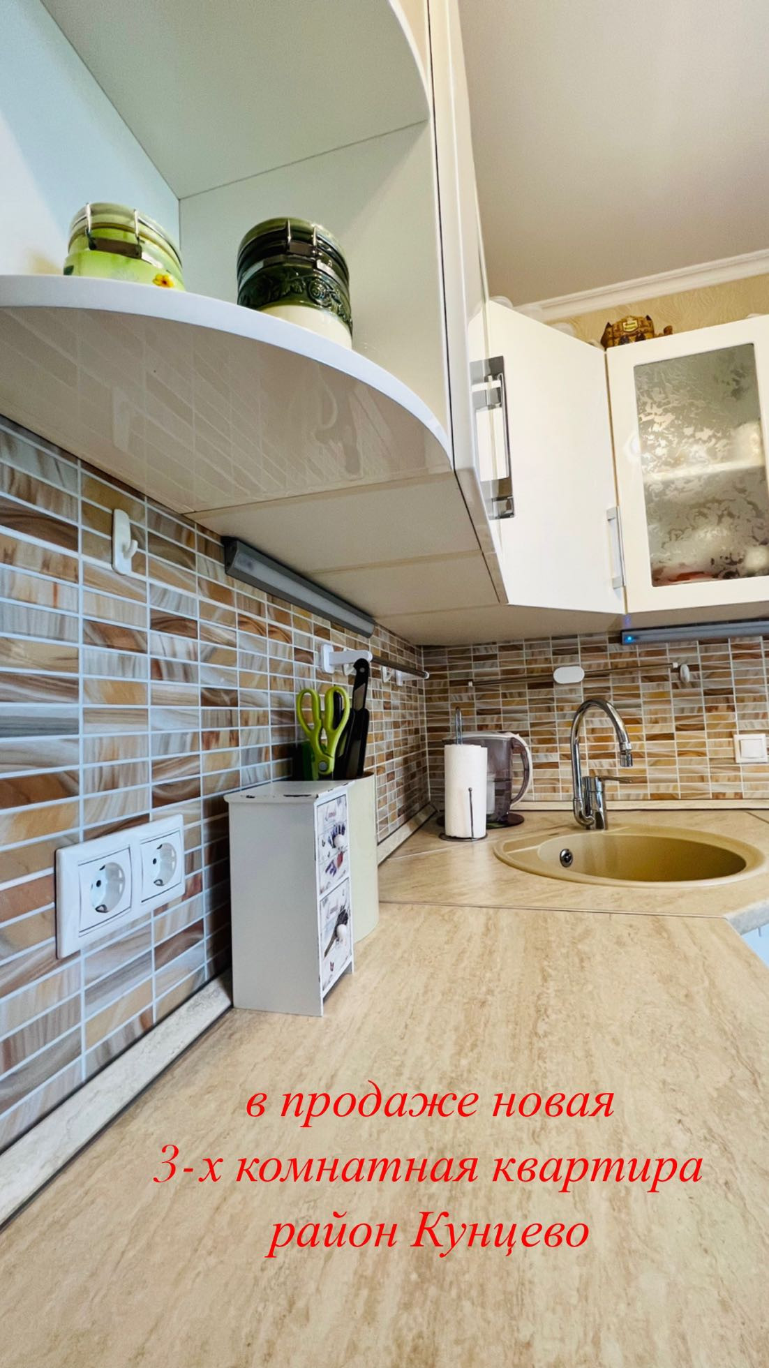 Всё это Вы найдёте в прекрасном районе Кунцево, проживая в нашей замечательной квартире рядом с тремя метро, Рублёвским шоссе, в окружении парков и скверов.