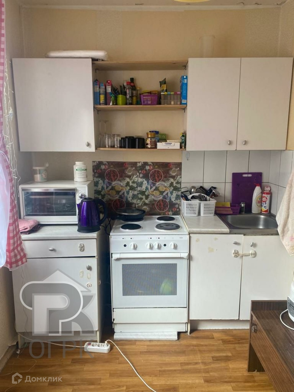 Квартира продается с мебелью: шкафы, кухонная мебель, кровать-трансформер и др. и бытовой техникой (плита, духовка, холодильник.)