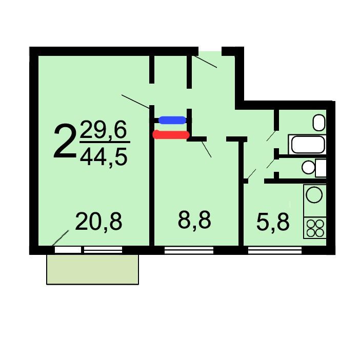 Количество комнат 2