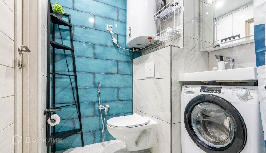 -Полный комплект сантехники в санузле, плюс стиральная машинка и тёплые полы с термостатом.
