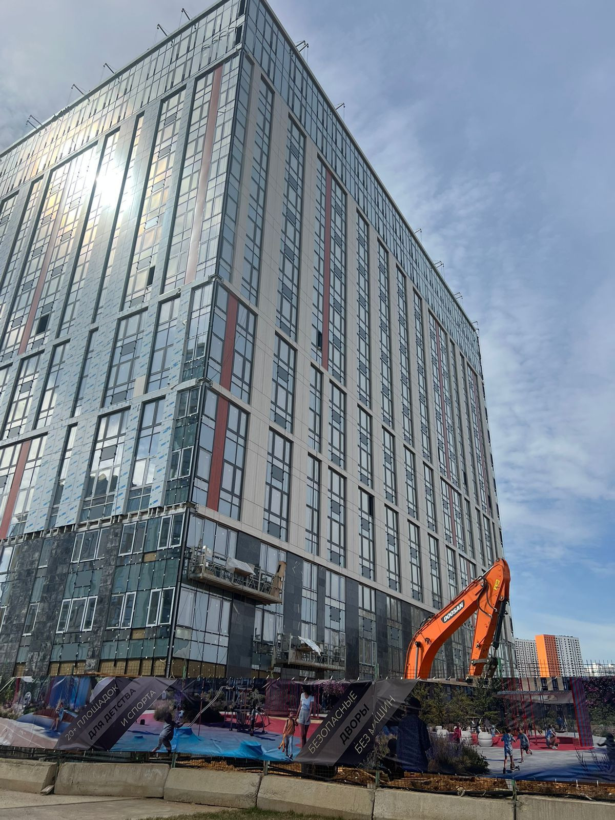 Планируется строительство всего 7 корпусов, школы и детского сада. Двор без машин, полностью охраняемая территория, видеонаблюдение, подземный паркинг под каждым корпусом. Ландшафтный дизайн придомовой территории.
