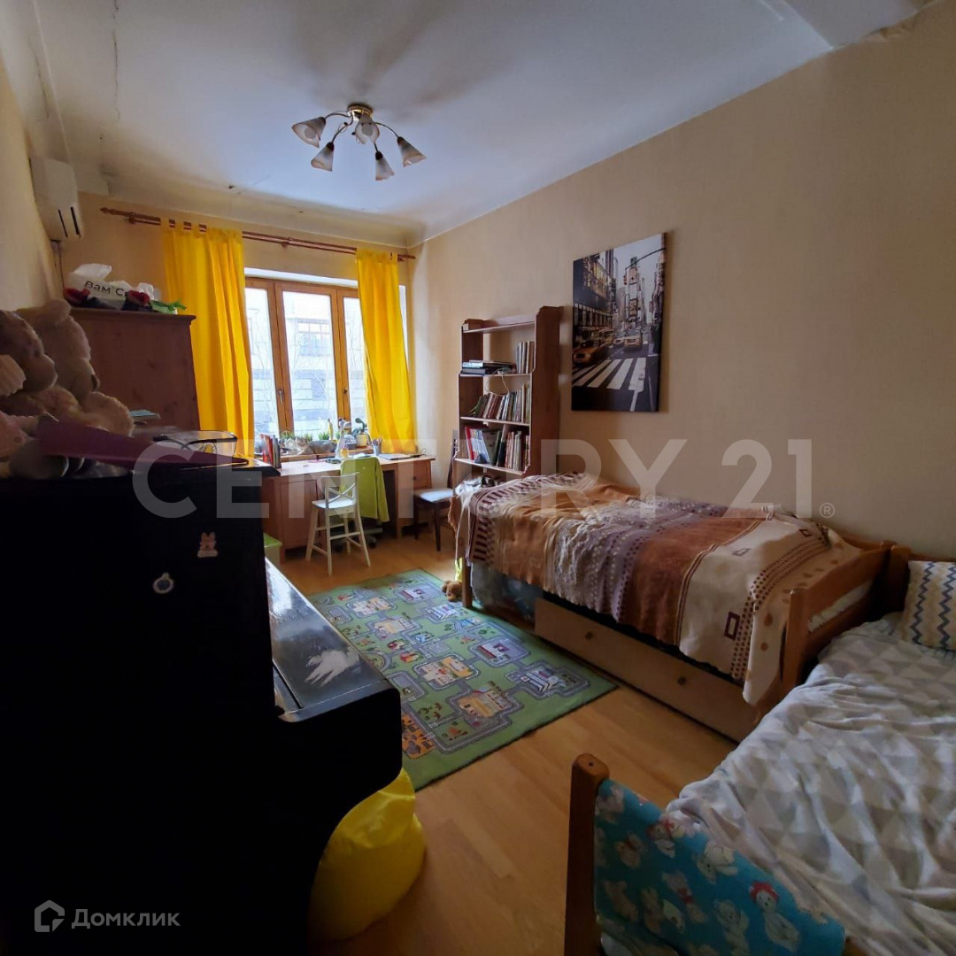 В историческом центре Москвы в кирпичном доме 1933 года предлагается уникальная квартира на 2 этаже для большой семьи. В квартире 4 большие жилые комнаты, в данный момент 3 из них отведены под спальни (15,4 м², 15,8 м², 12,5 м²) и одна под кабинет (11,8 м²). Есть два санузла: один гостевой, другой совмещенный. Просторная кухня 8.5 м². Пятикамерные окна REHAU увеличенного размера выходят как во двор, так и на улицу.