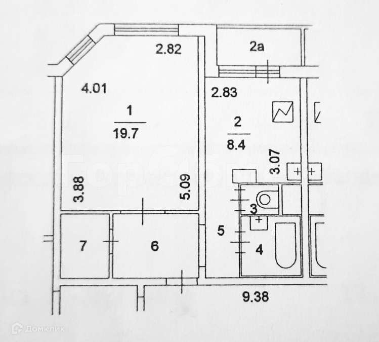Жилая площадь 19.8 м2