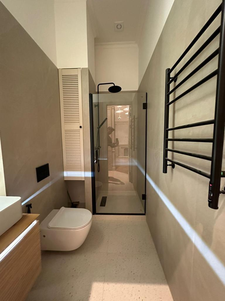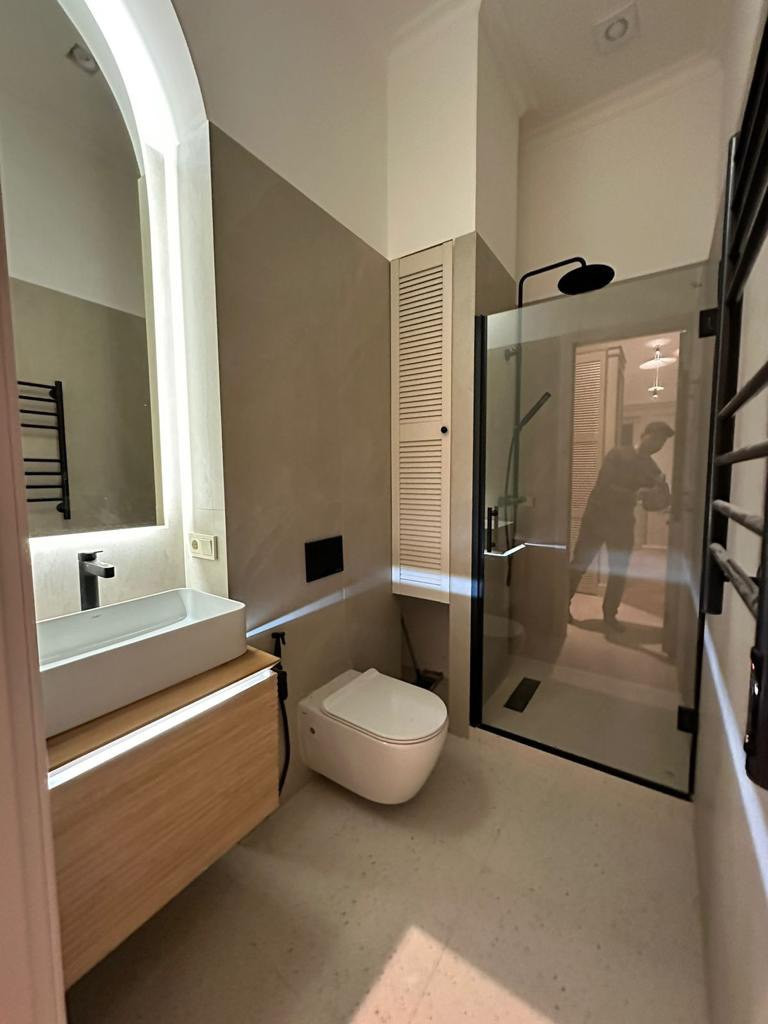 Квартира предлагается с мебелью и всей необходимой бытовой техникой, встроенной кухней, посудомоечной машиной, холодильником, варочной панелью., гардеробная комната с дверью купе, стиральной машинкой, душевой кабиной, водонагревателем.