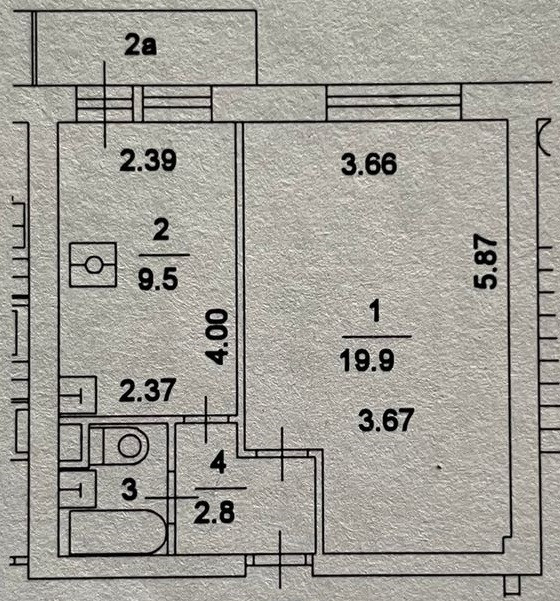 Общая площадь 34.7 м2