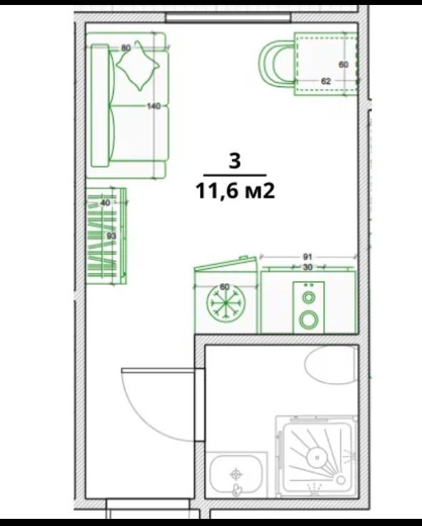 Общая площадь 12 м2