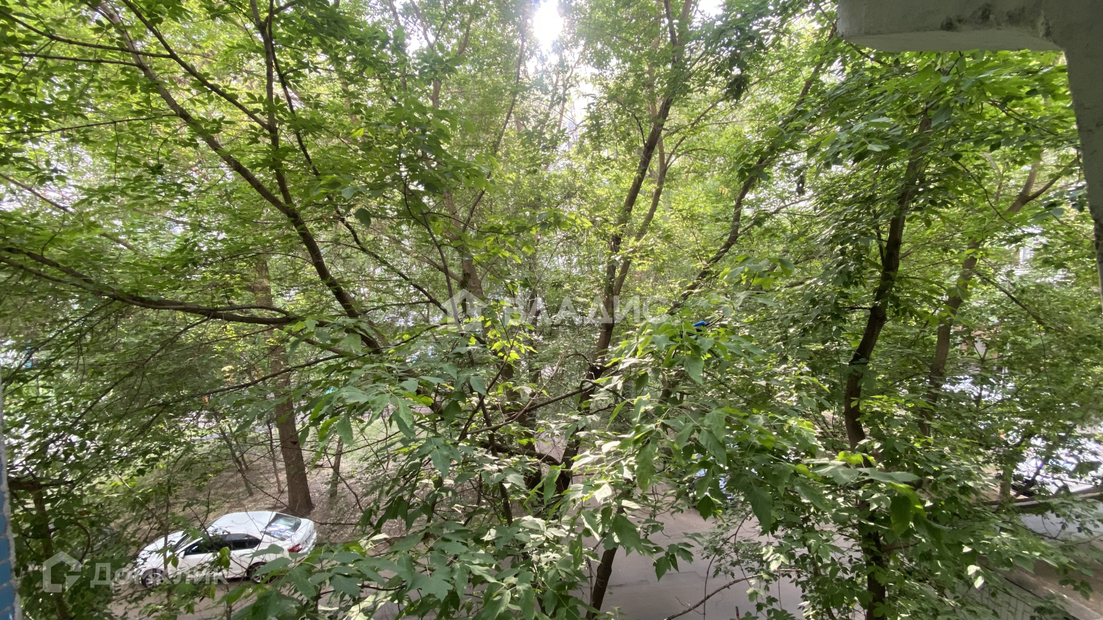 Большой двор с обилием зелени, детских и спортивной площадками.