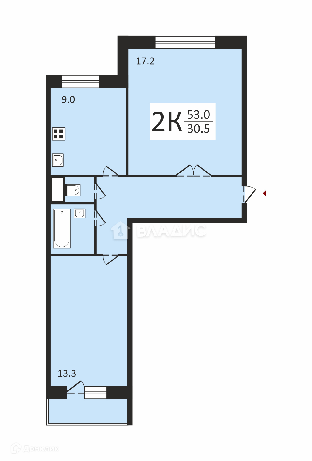 Общая площадь 53 м2