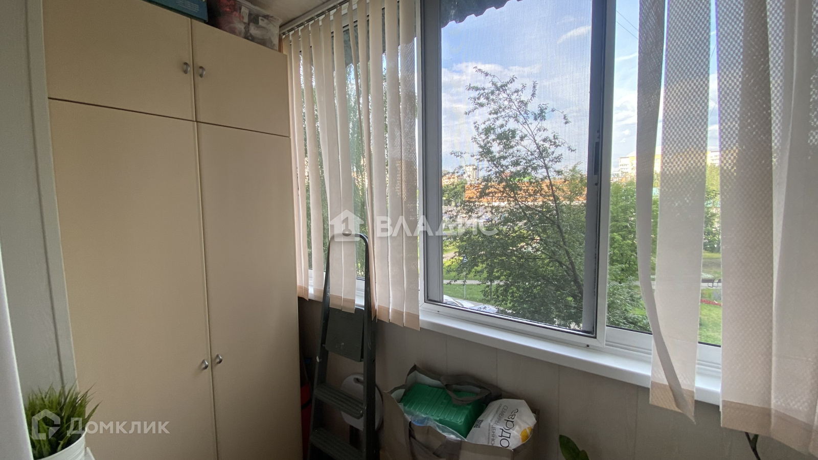 На балконе находятся два вместительных шкафа производство Дядьково.