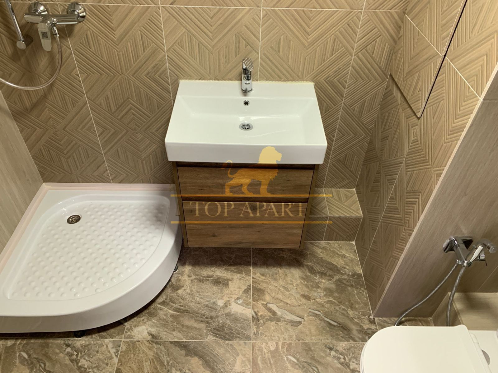 Студии с отделкой под ключ - электрика Шнайдер (есть силовая розетка под духовку), качественный износостойкий ламинат, дорогие радиаторы, профессиональная сплит-система (летом охлаждает, зимой нагревает). Немецкие стеклопакеты Фауст, С/У под ключ - сантехника Grohe Hansgrohe, гигиенические и тропические души, полотенце-сушитель, дорогая плитка, итальянские межкомнатные двери и петли.