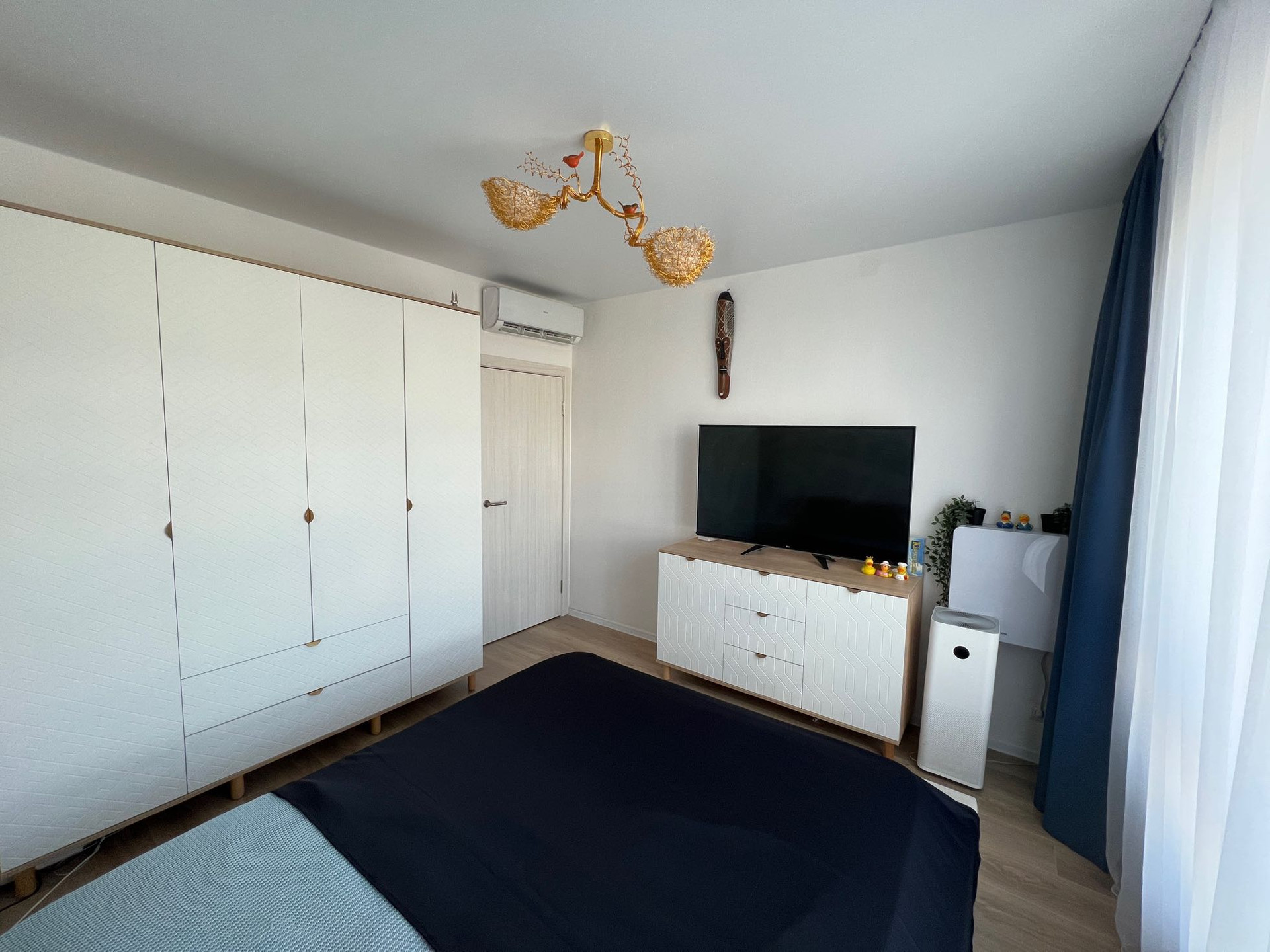 В каждой комнате кондиционеры Haier с фильтрами, также в спальне и гостиной установлены Бризеры, устройства приточной вентиляции, которые обеспечивают максимально чистый и влажный воздух. Окна можно не открывать, так как в квартире чистый воздух благодаря бризерам.