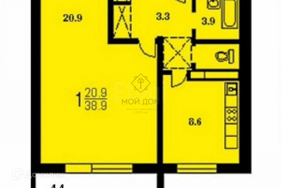 Общая площадь 39 м2