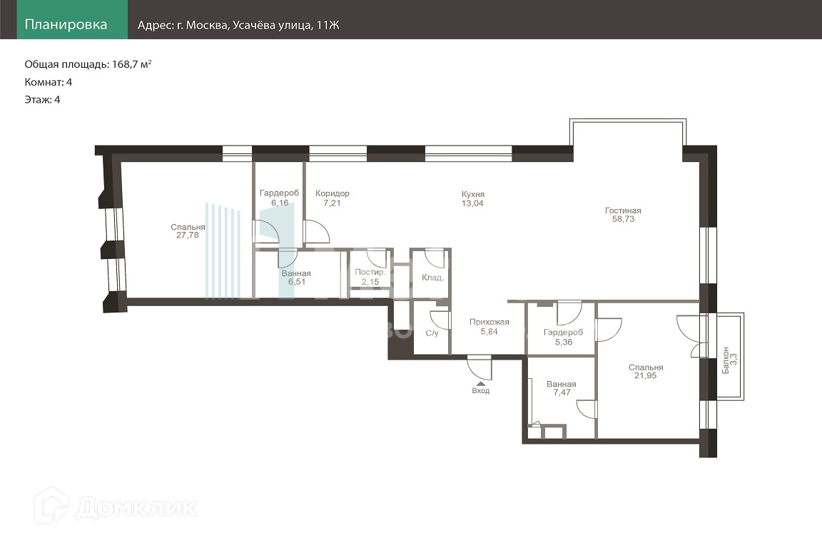 Общая площадь 168.7 м2