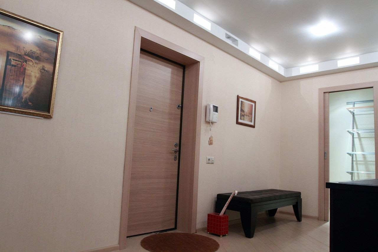 проект, так как дом монолитно-кирпичный и внутри есть только одна колонна, которую нельзя сносить. В доме бдительный консьерж; видеонаблюдение; внутренняя территория огорожена шлагбаумами, что позволяет без труда парковать свой автомобиль возле дома; общественное пространство на первом этаже с мягкой мебелью и цветами, для встреч;
