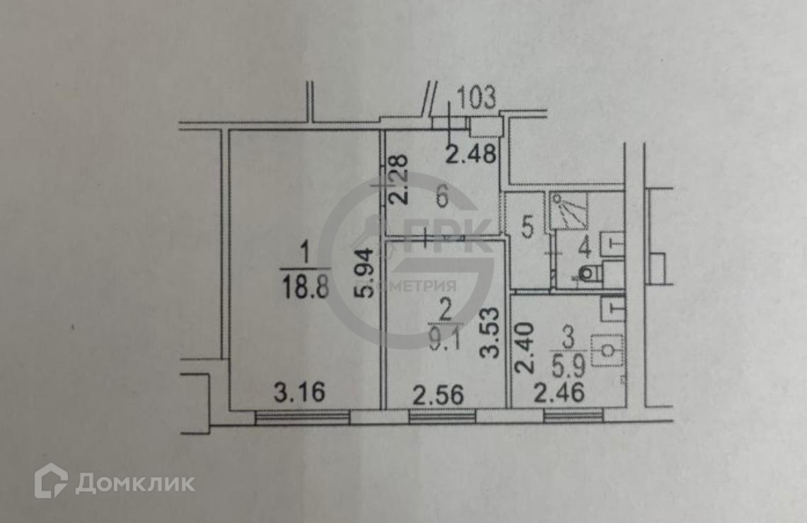 Общая площадь 44.3 м2