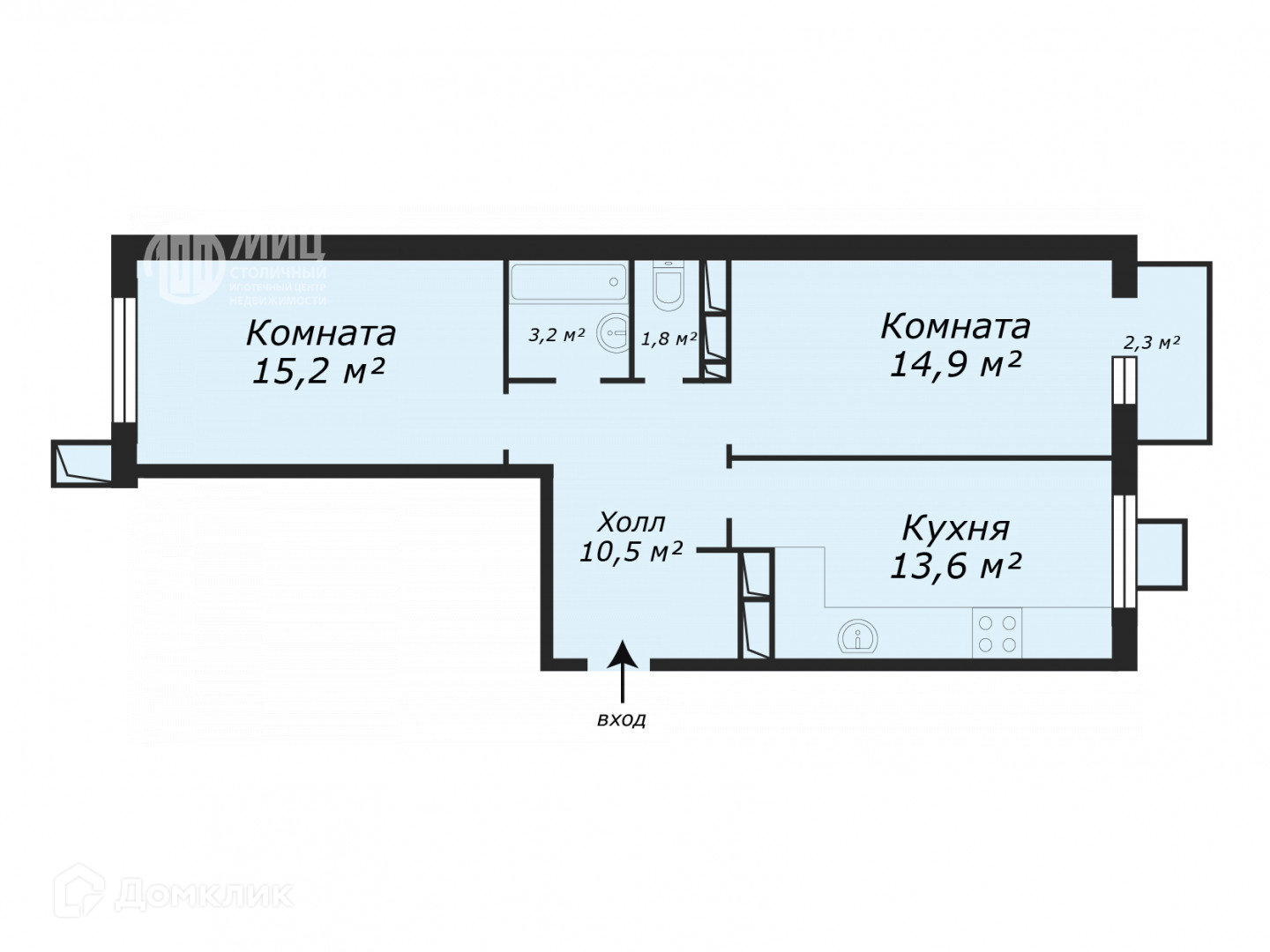 Общая площадь 61.5 м2