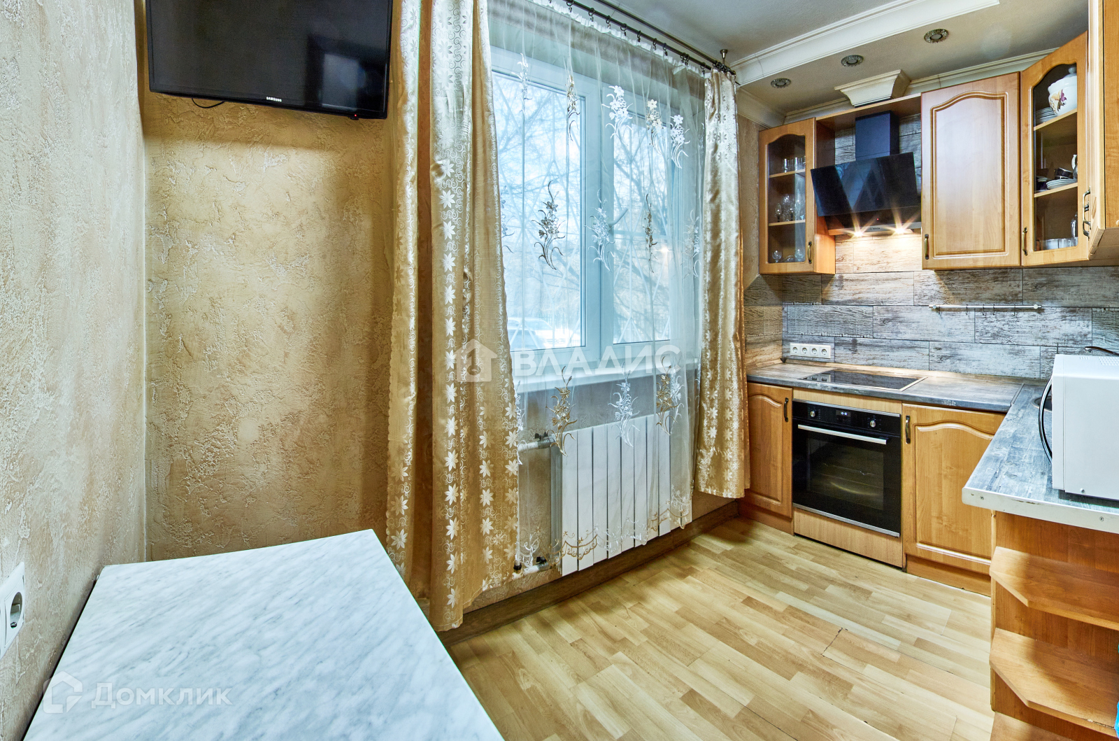 В квартире сделан хороший ремонт, встраиваемая мебель и техника остается. Дом с огороженной территорией, въезд под шлагбаум, круглосуточная охрана, в подъезде консьерж, всегда есть где поставить машину. Первый высокий этаж.  Доброжелательные соседи.