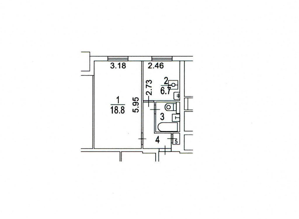 Жилая площадь 18.8 м2