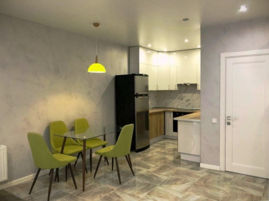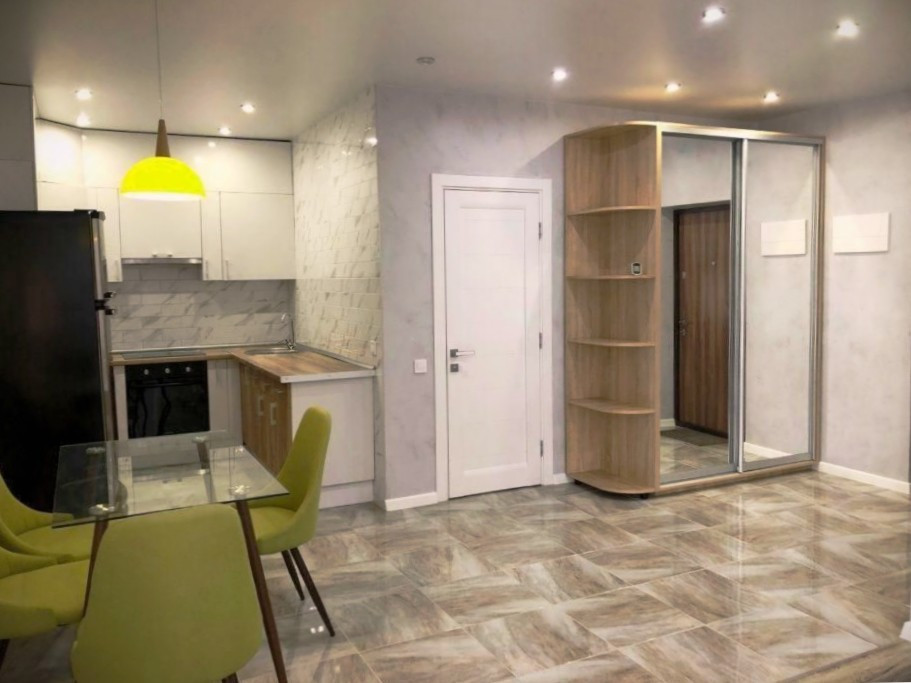 Квартира видовая, с хорошим ремонтом. Мебель подобрана под стиль отделочных материалов. В квартире есть небольшая прихожая.