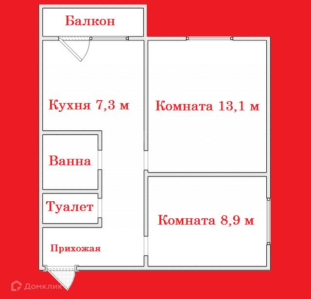 Жилая площадь 21.9 м2