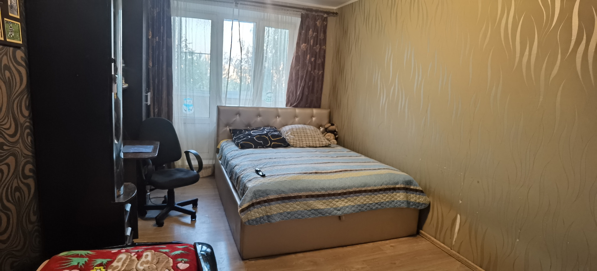 Квартира расположена на 8-ом этаже 9-ти этажного дома площадью 32,5 кв м, в большой комнате 17кв м выход на застекленную лоджию площадью около 3кв м, кухня - 7,9кв м, санузел совмещённый, выполнен косметический ремонт, перепланировок нет, мебель частично остаётся новому собственнику!