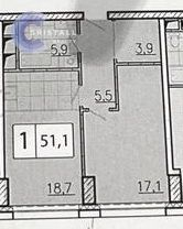 Общая площадь 51 м2