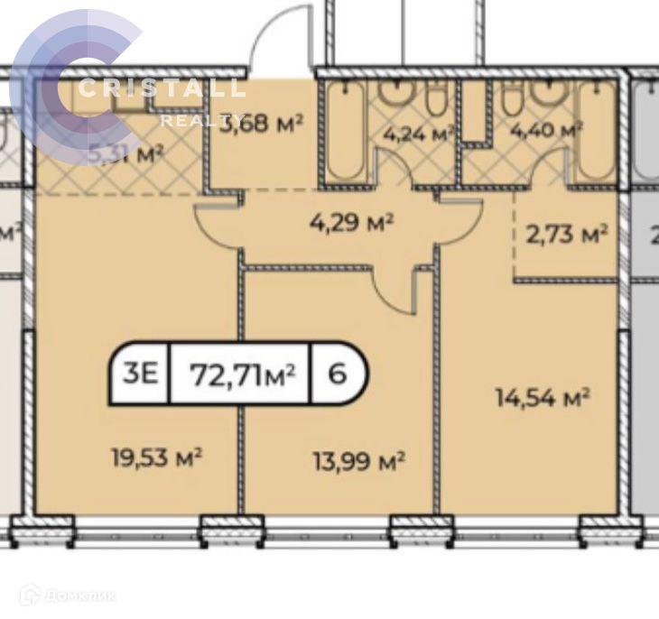 Общая площадь 73.5 м2