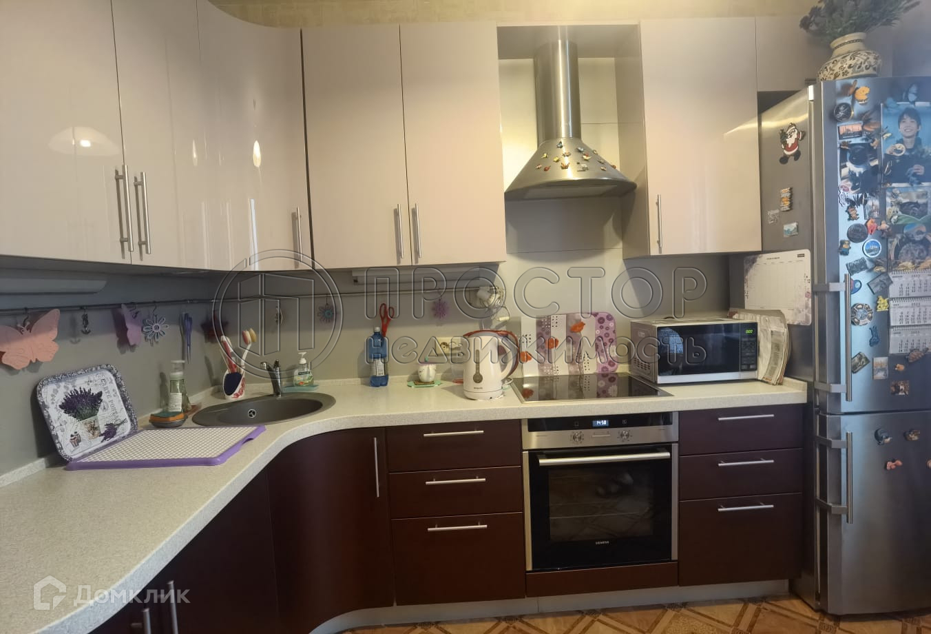 В квартире распашная планировка, две большие лоджии 2,3+2,7 кв.м. На кухне встроенный гарнитур, бытовая техника.