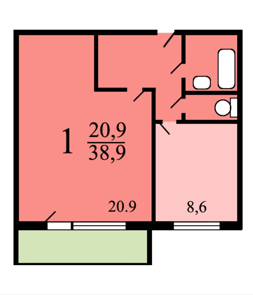 Общая площадь 38.9 м2