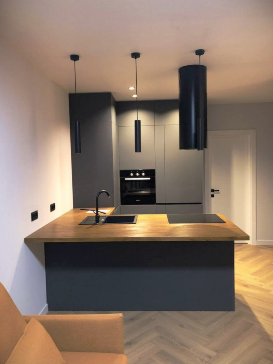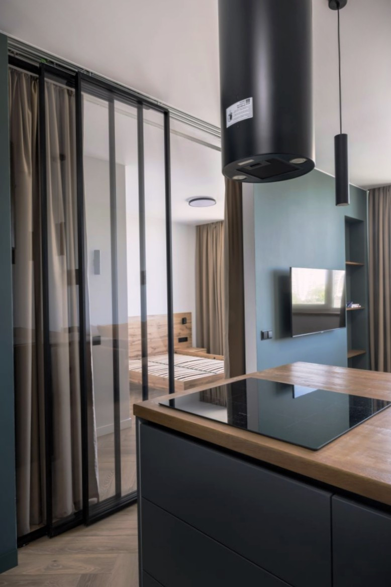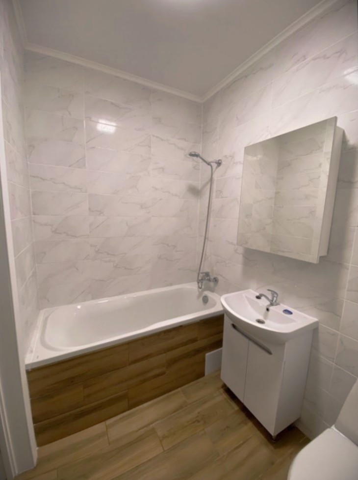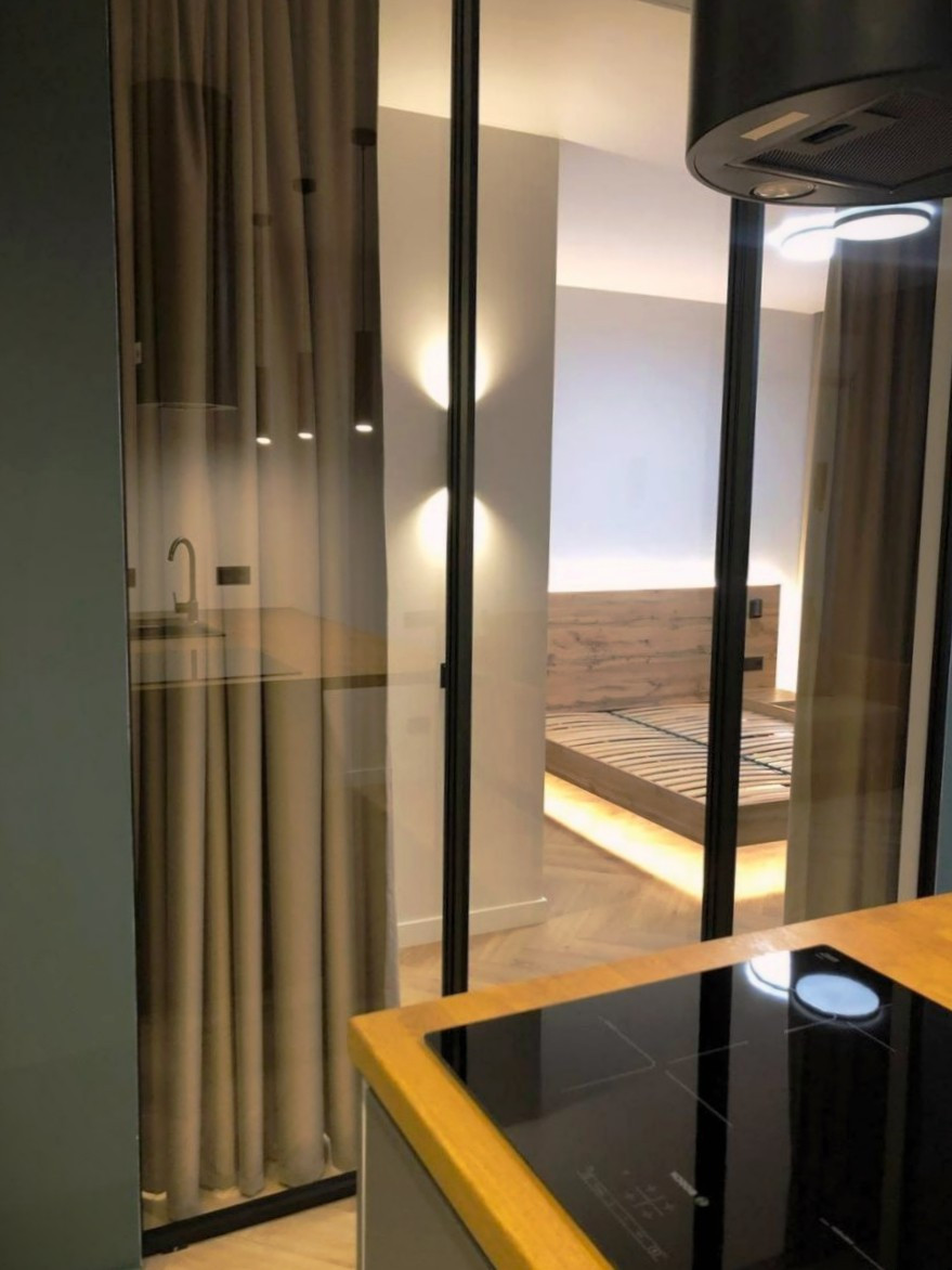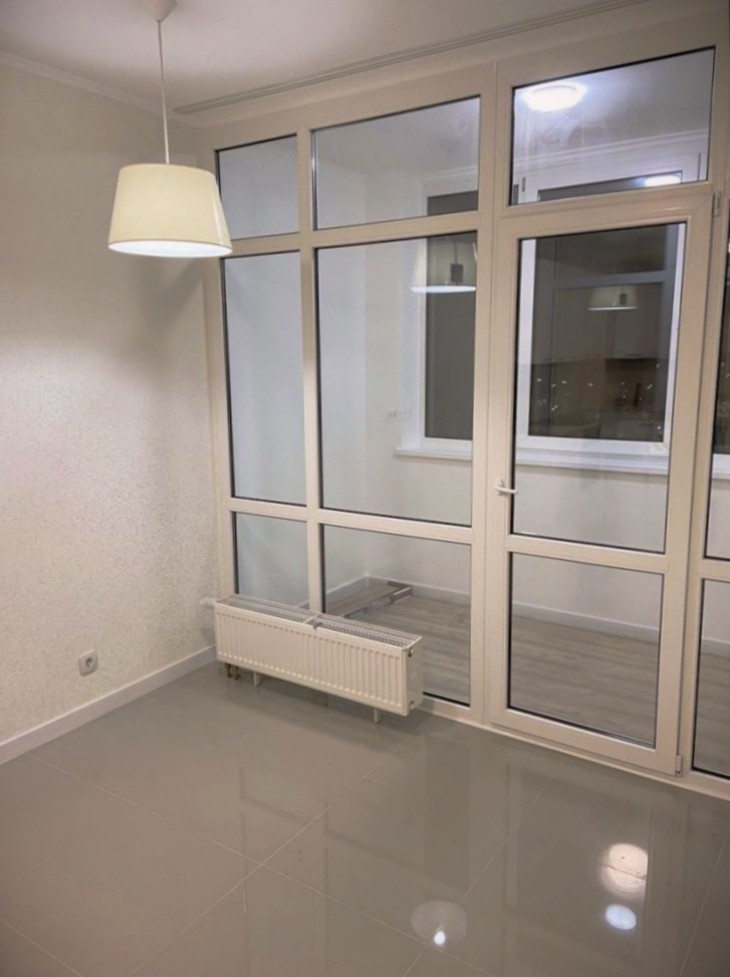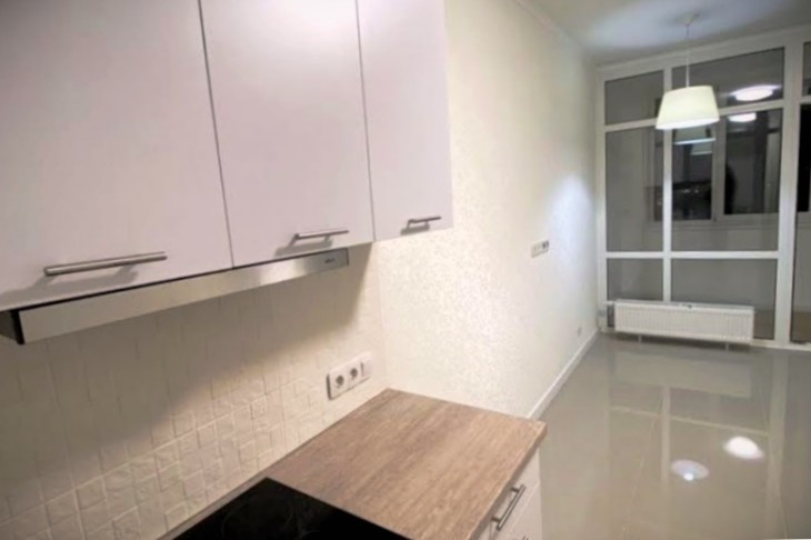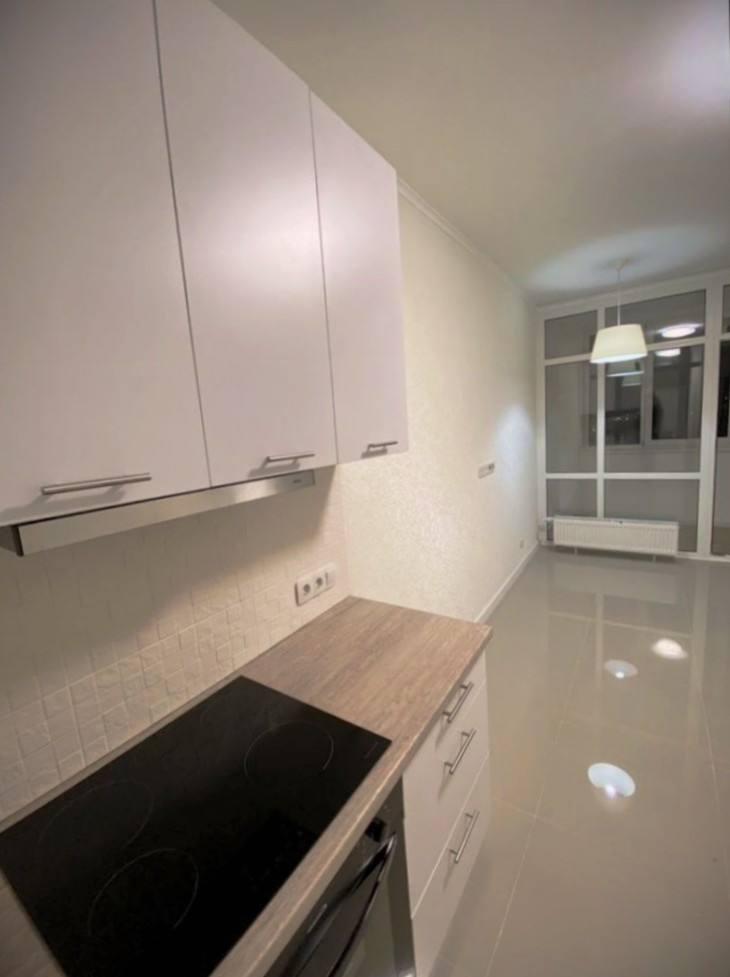Однокомнатная квартира с просторной кухней гостиной в современном квартале Москвы.