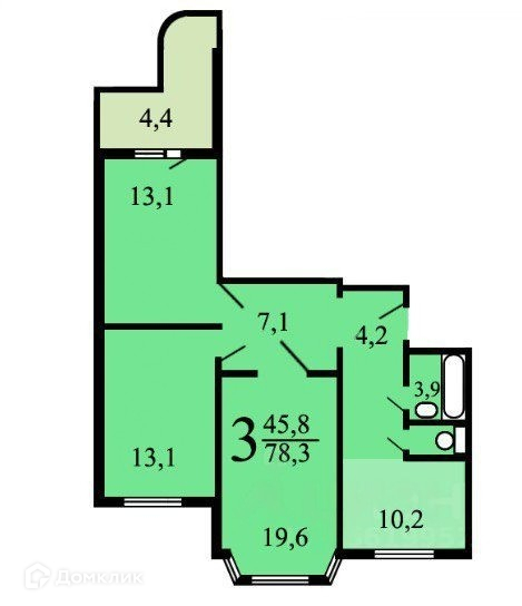 Общая площадь 77 м2