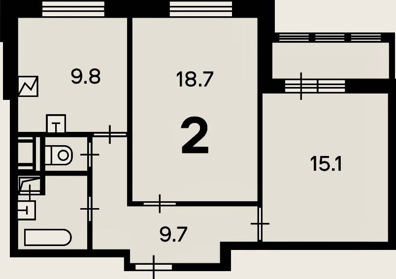 Жилая площадь 34.3 м2