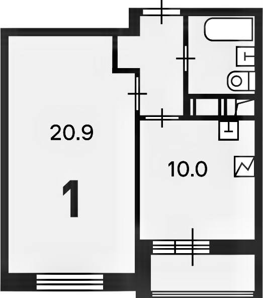 Жилая площадь 20.9 м2