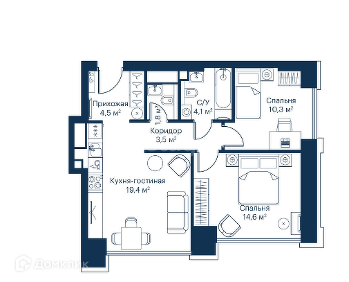 Общая площадь 63 м2