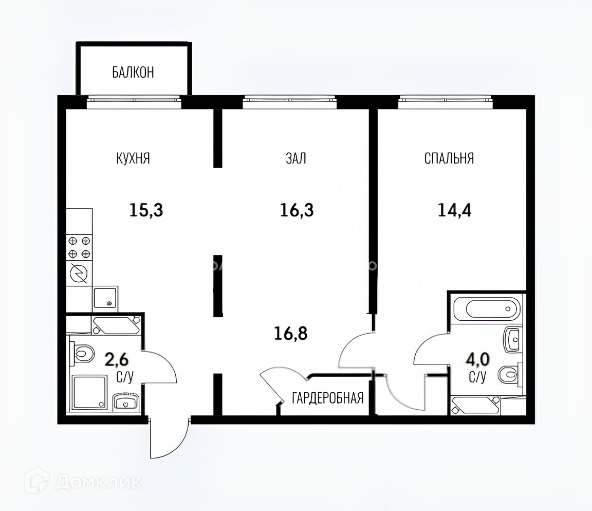 2 санузла 4,0 и 2,6 кв.м