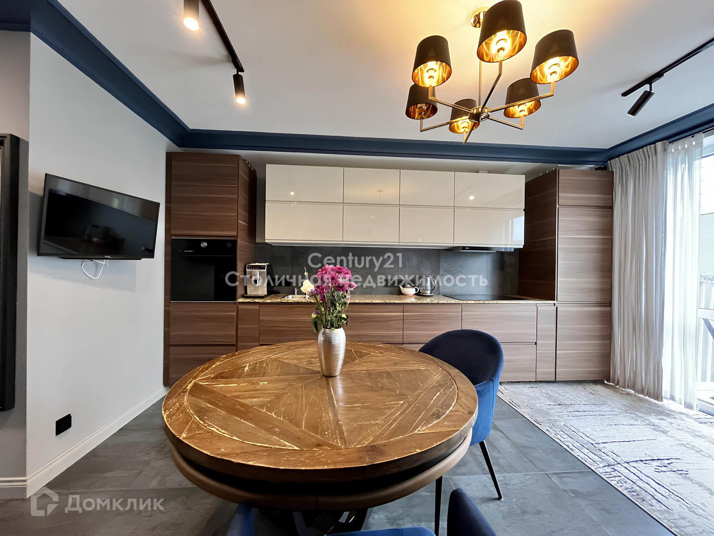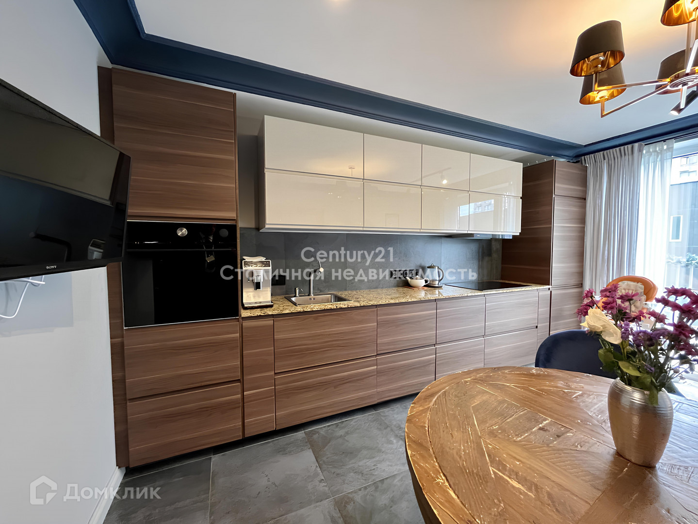 Духовой шкаф Electrolux (с паром), холодильник, посудомоечная машина, индукционная плита, два телевизора. Столешница и подоконники из искусственного камня, тёплый пол Devi