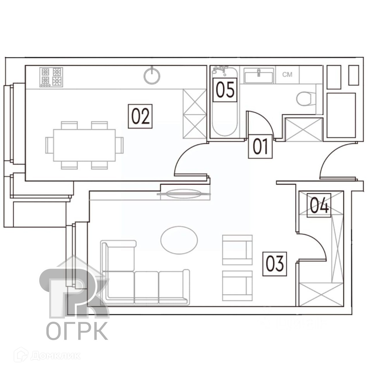 Общая площадь 42.3 м2