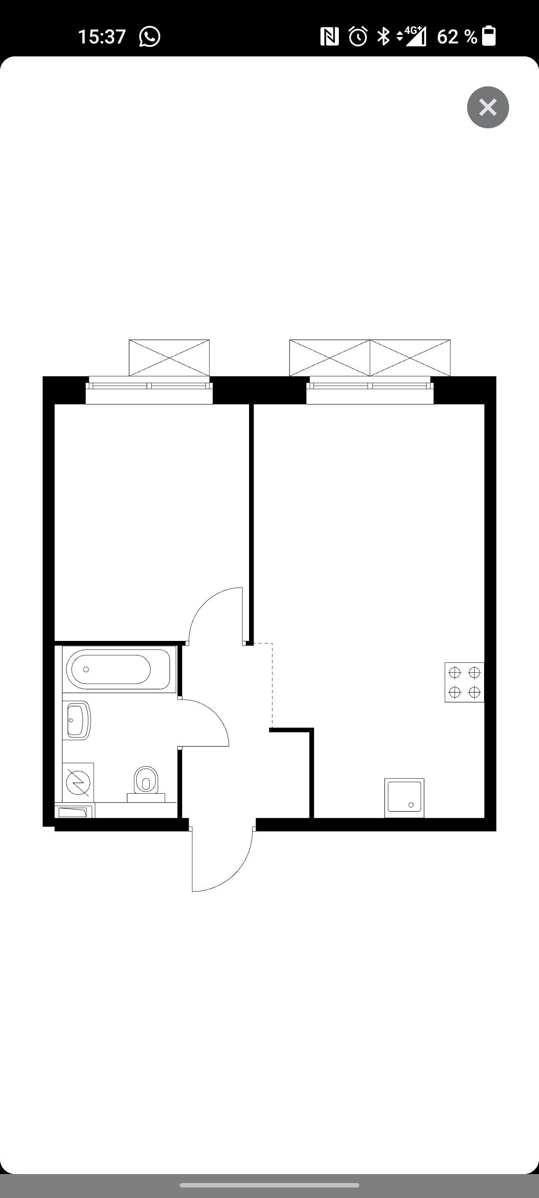 Общая площадь 37.7 м2
