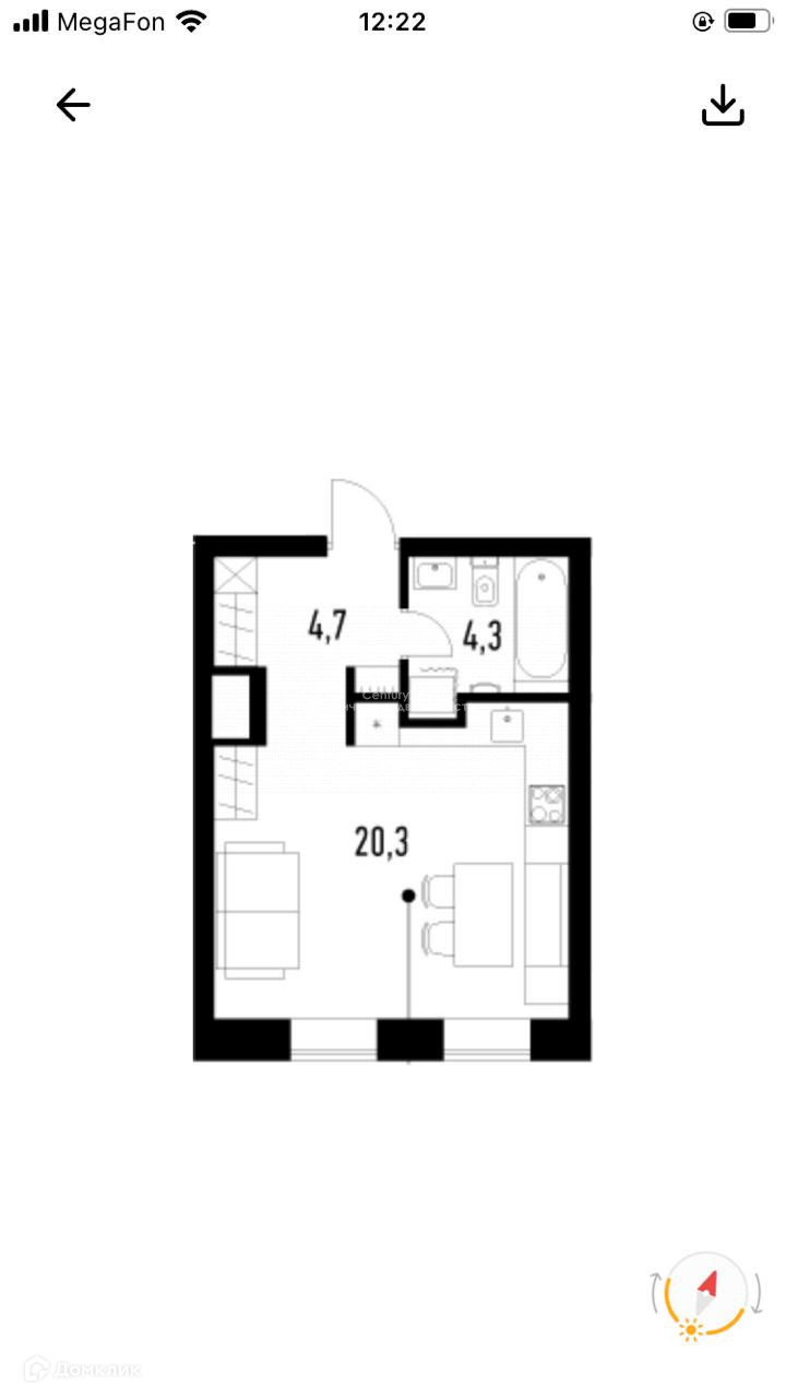 Общая площадь 29.3 м2