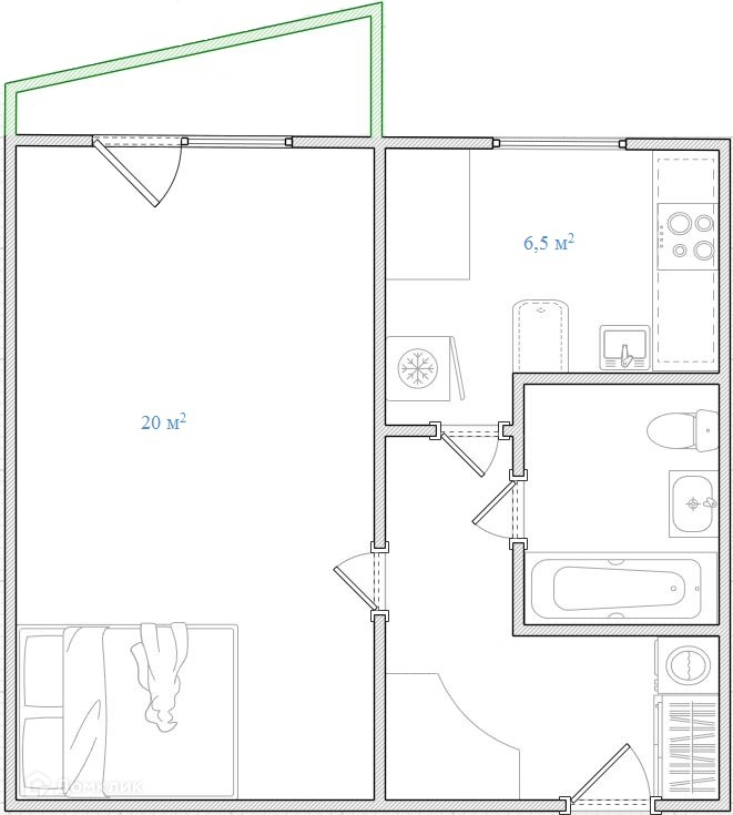 Жилая площадь 19.1 м2