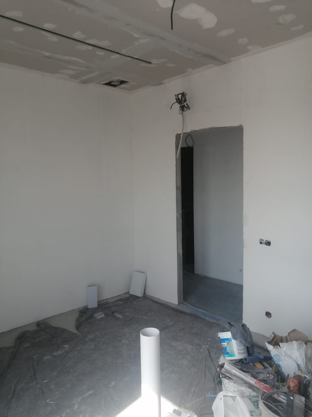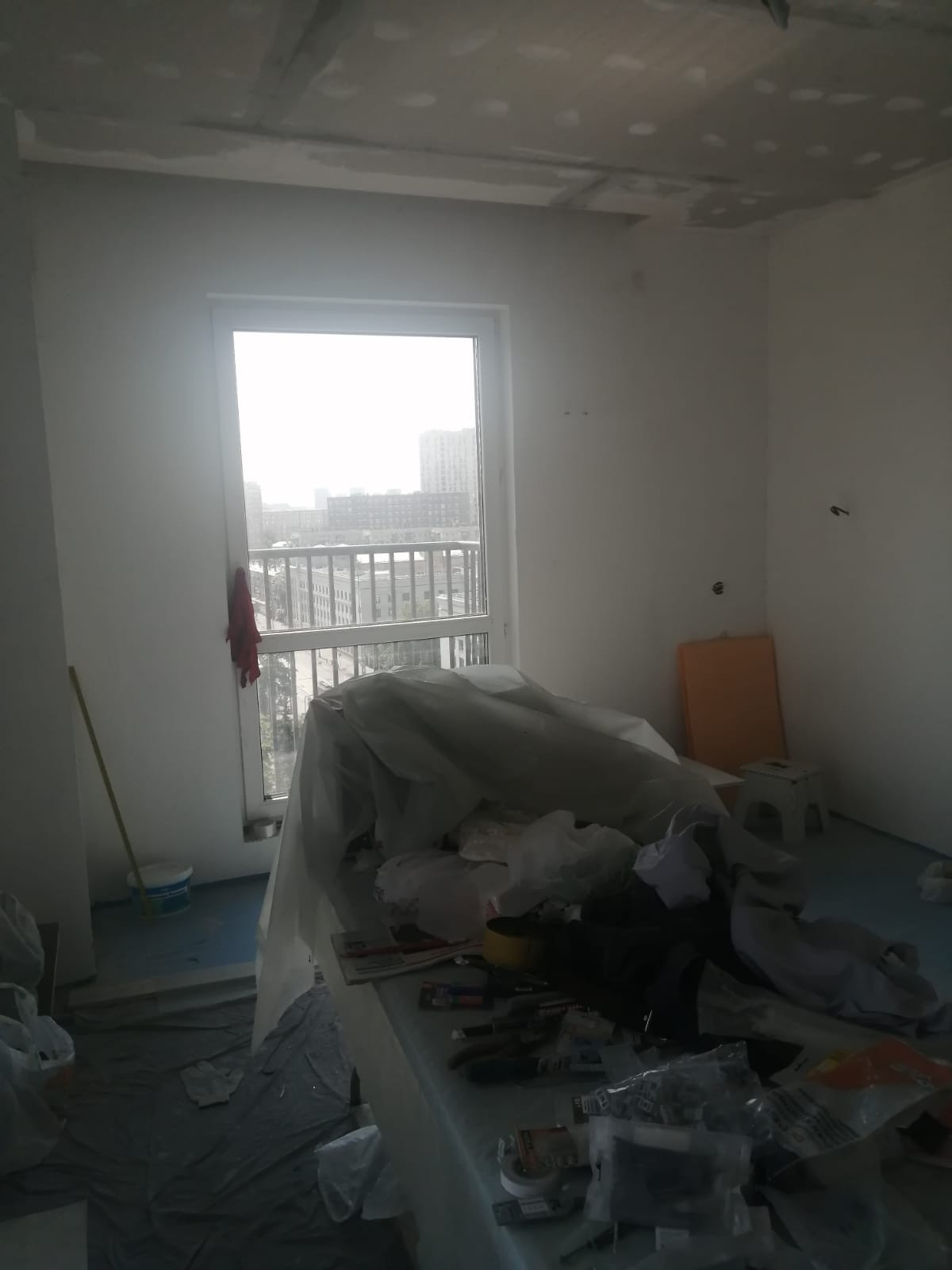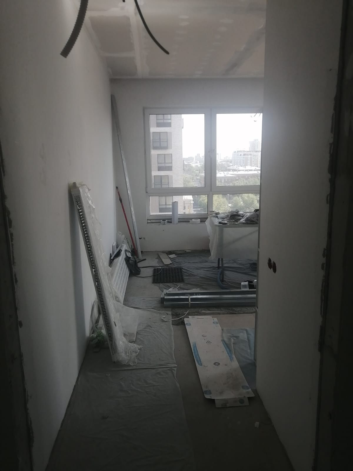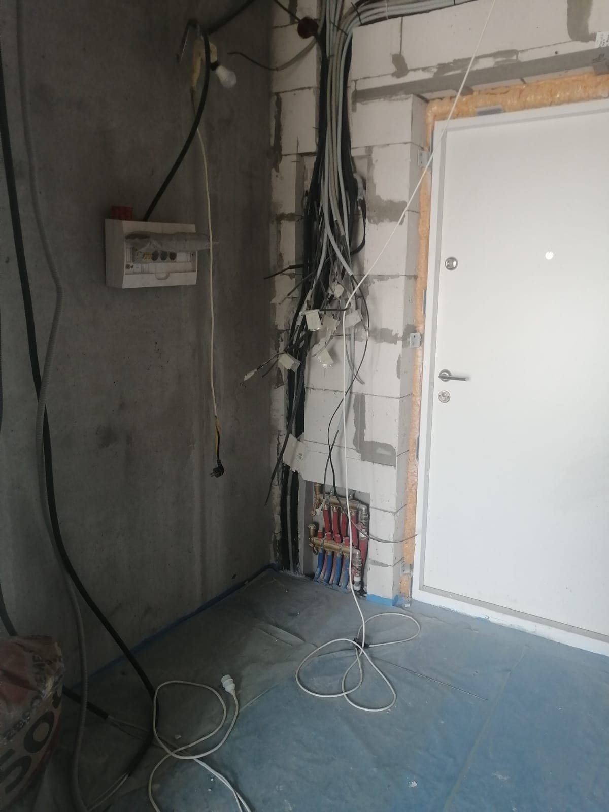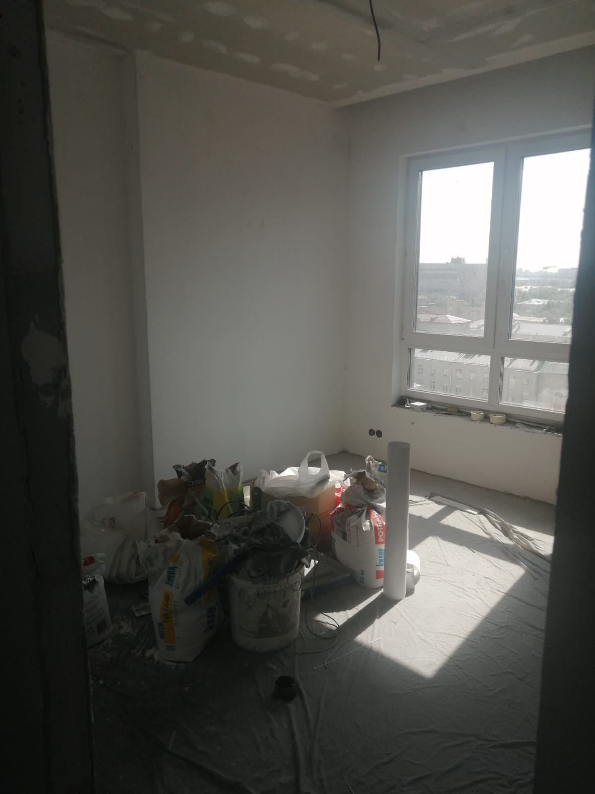 В квартире произведены следующие работы : возведены стены ,штукатурка, шпатлевка 1 слой ,разводка воды , разводка электрики , разводка систем кондиционирования VRF , наливной пол , потолок гипсокартон , откосы ,санузел штукатурка пескобетон.