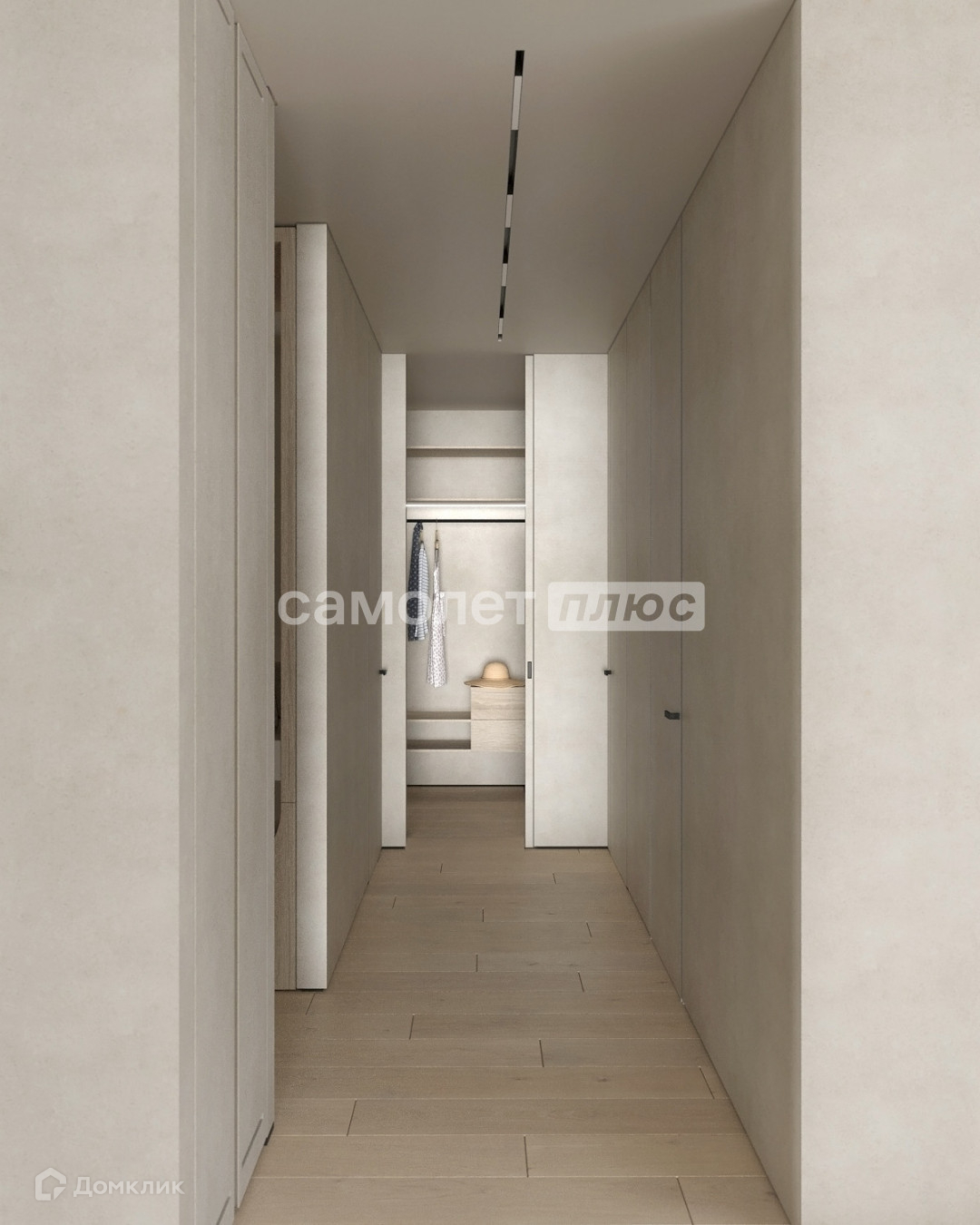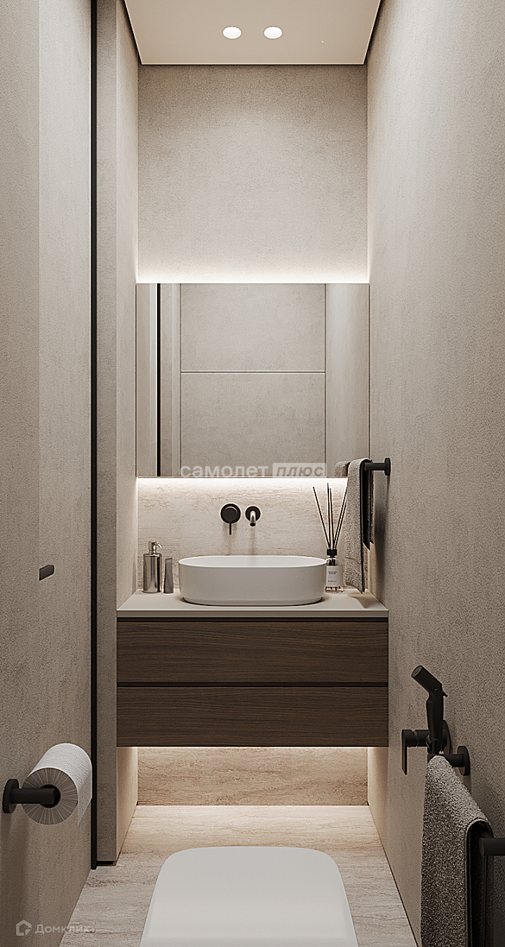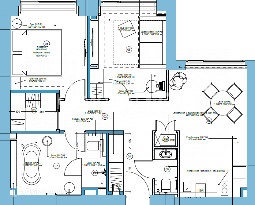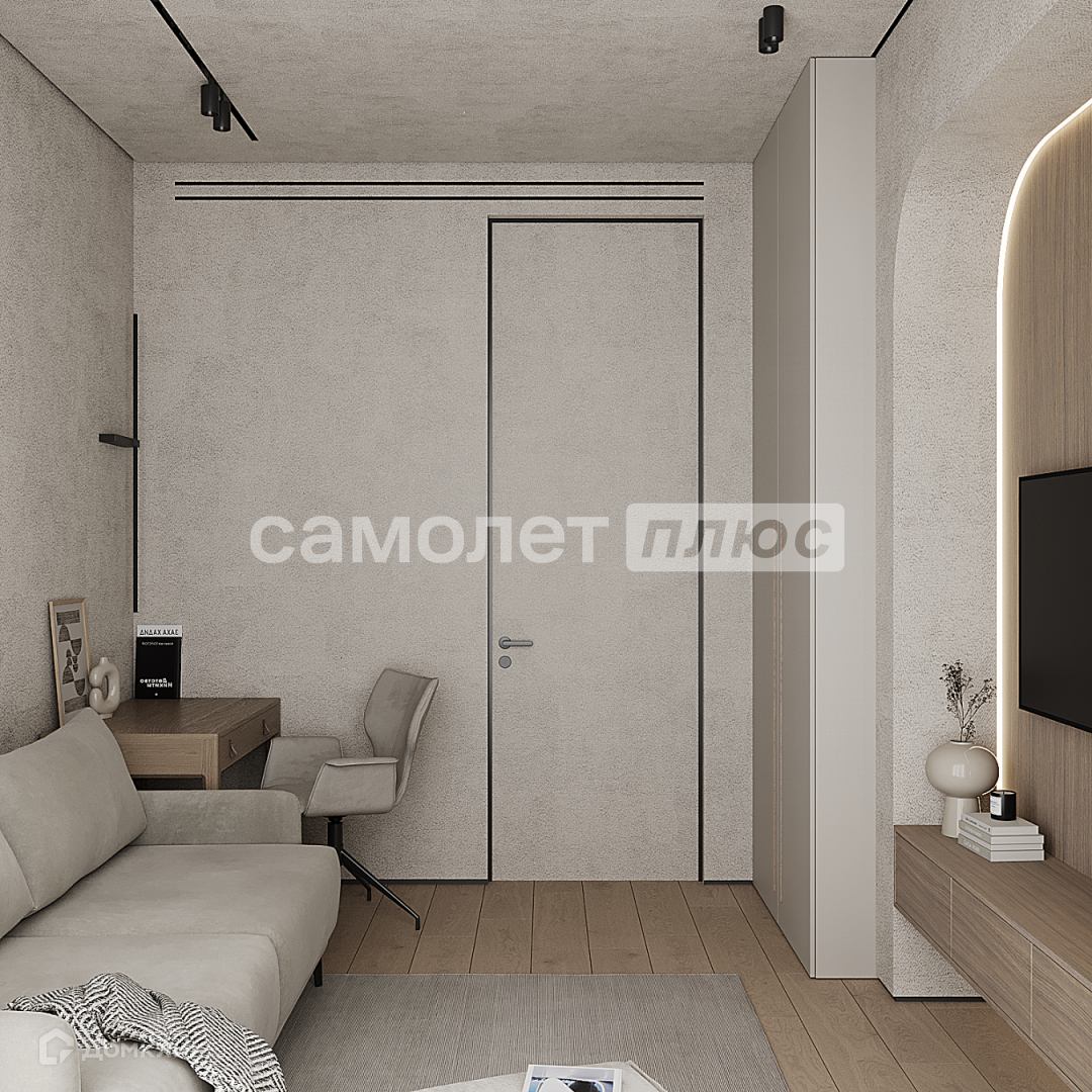 Планировка: 2 спальни, одна из них с гардеробной и большим санузлом, кухня-гостиная, гостевой санузел.