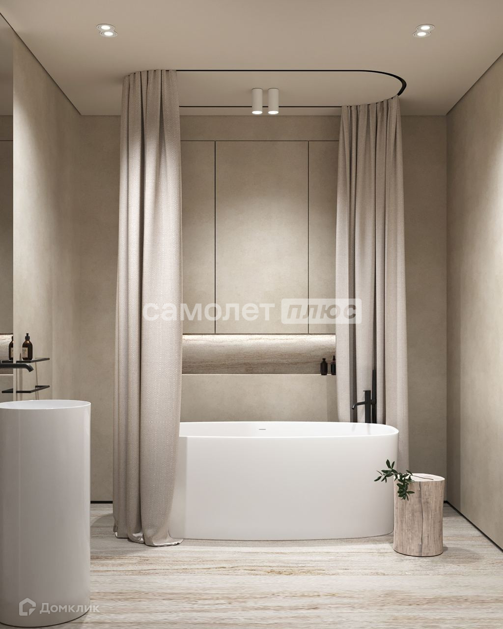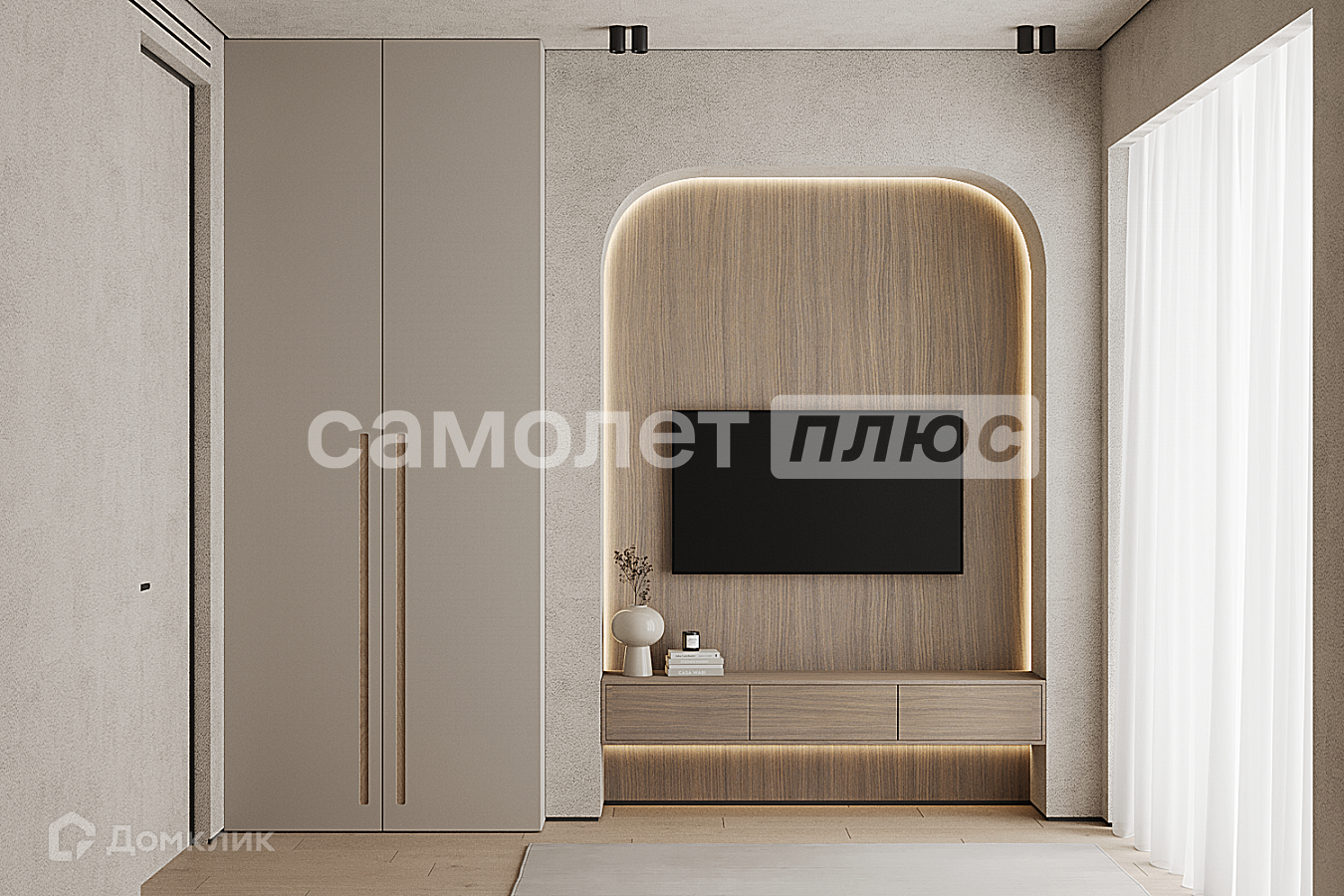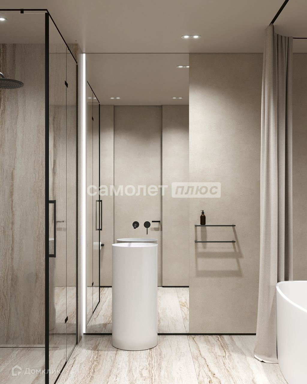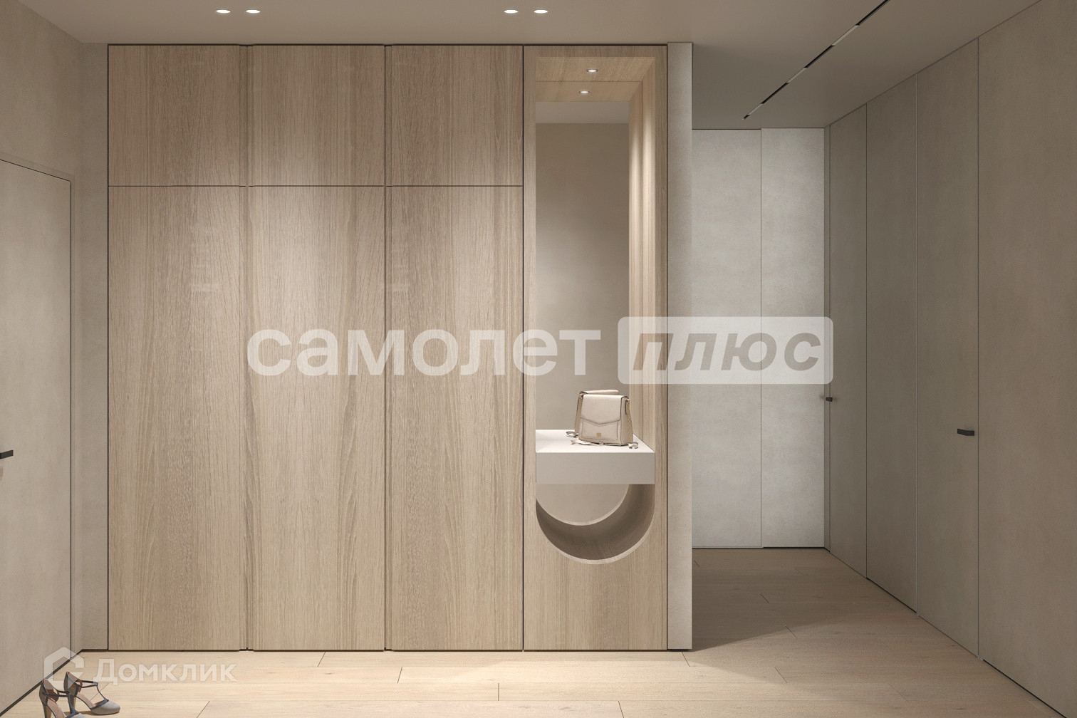 Планировка: 2 спальни, одна из них с гардеробной и большим санузлом, кухня-гостиная, гостевой санузел.