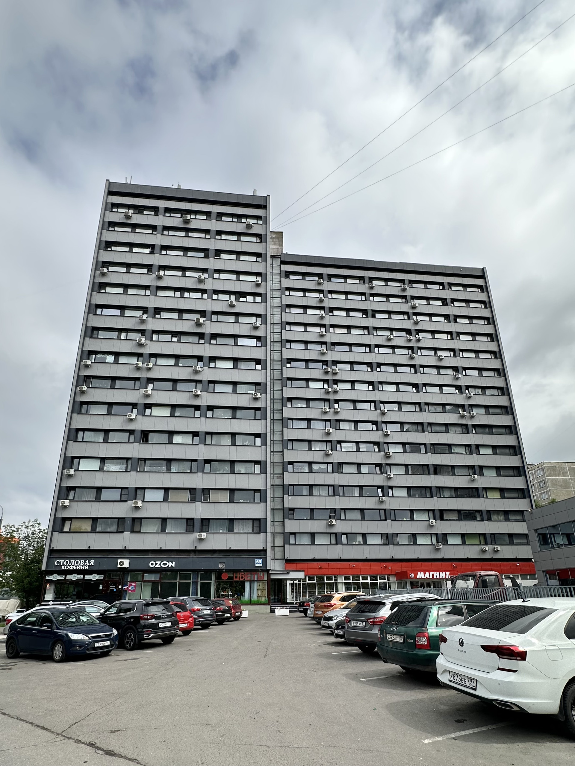 В доме расположен сетевой супермаркет Магнит, кофейня, Озон.  В соседнем доме вайлдберриз, Чайхона 1, магазин Пятёрочка и др.