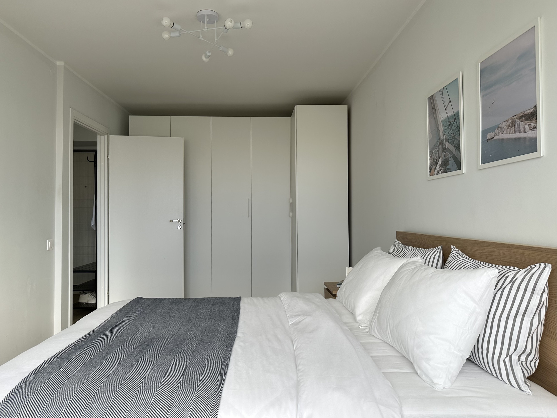Предусмотрено множество мест хранения - вместительный шкаф и выдвижные ящики под кроватью, которые позволяют разместить все вещи, оставляя пространство свободным.