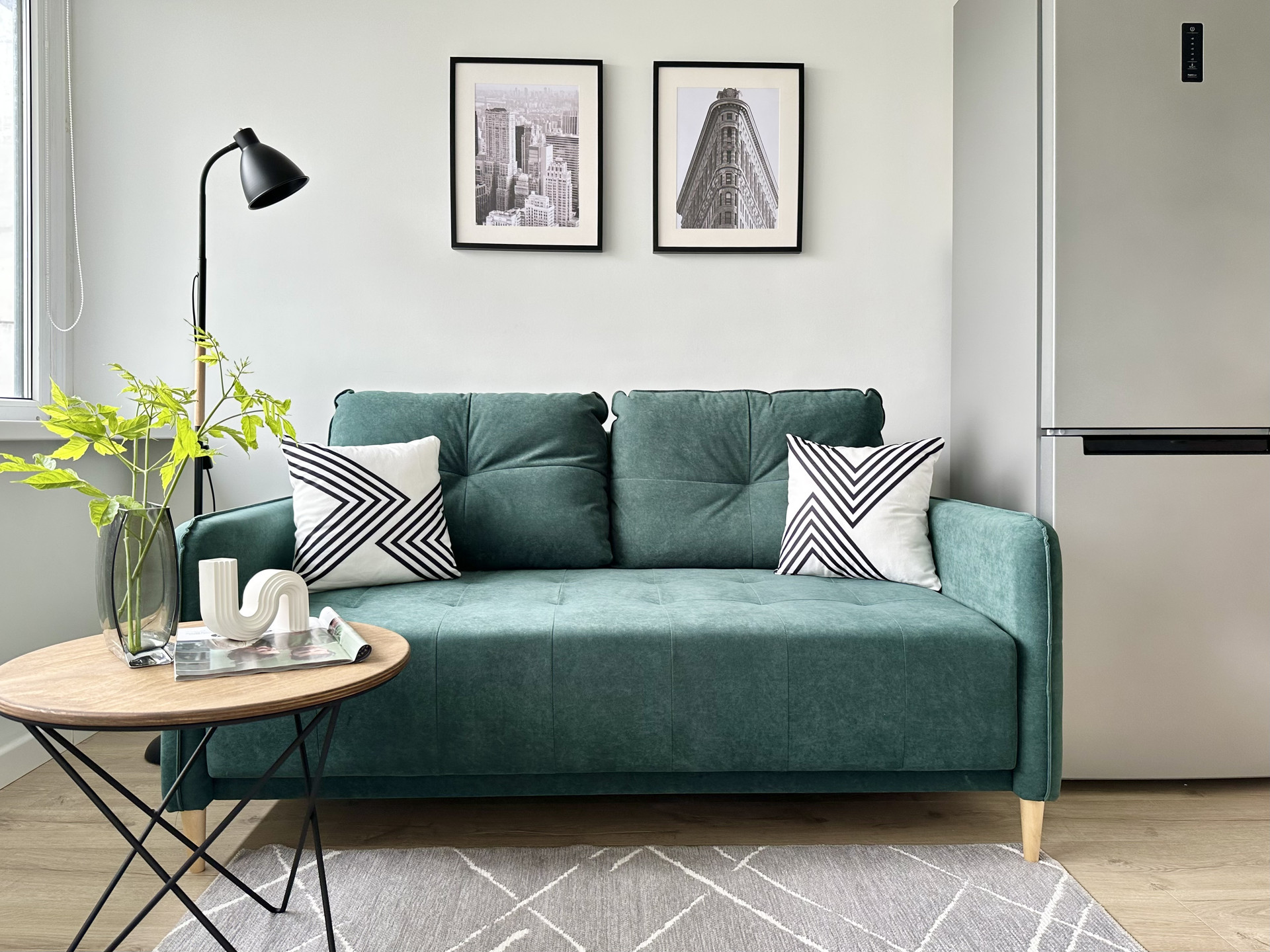 Квартира площадью 35.5 м2, кухня-гостиная и просторная спальня.