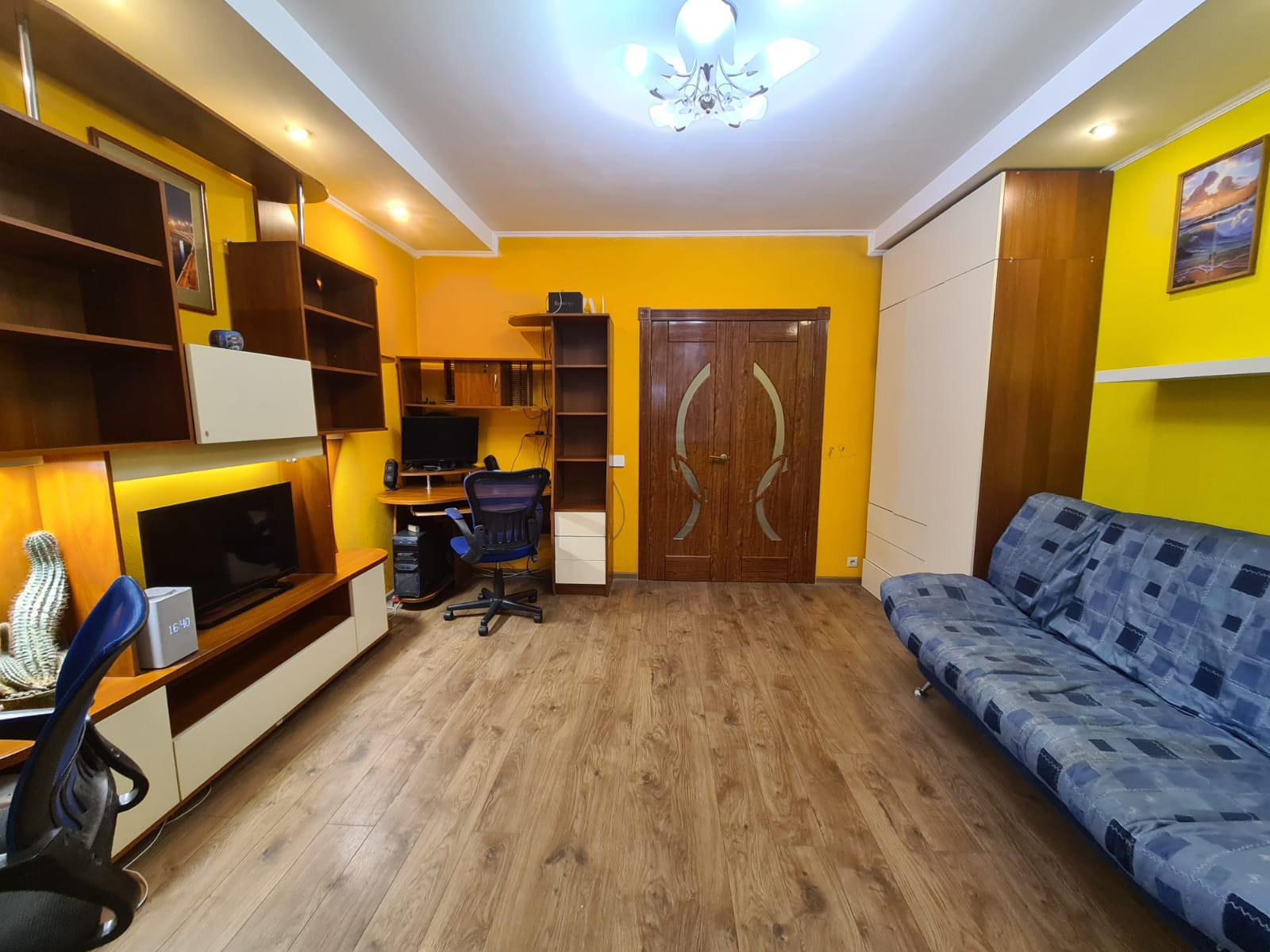 В квартире ровные стены, полы, потолки. Окна пластик, вид на парк и во двор. В спальне и на кухне на окнах жалюзи. В квартире хорошо разведена проводка, много разеток. Выключатели "умный дом". На полу ламинт. Батареи новые, современные.