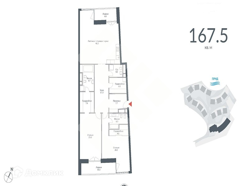 На берегу Мосфильмовского пруда в ЖК премиального класса "Снегири Эко" к покупке предлагается отличная 3-комнатная квартира без отделки общей площадью 167,5 кв.м.